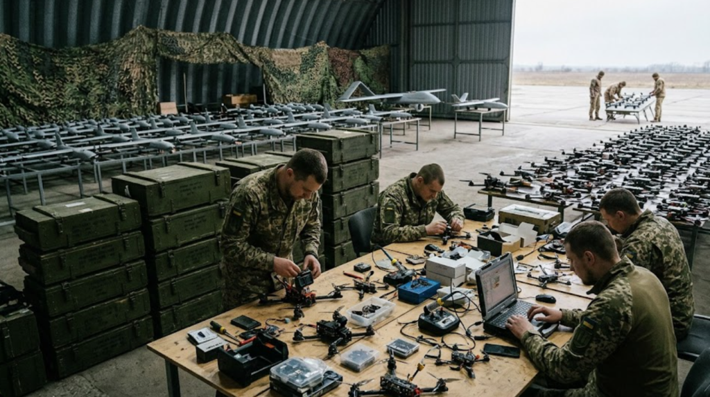 Od začetka obsežne invazije leta 2022 do danes, v dobrih štirih letih neizprosnega konflikta, je Ukrajina postala ultimativni poligon za razvoj dronov. Ker Kijev ni imel na voljo neskončnih virov klasičnega letalstva, je moral improvizirati. Rodila se je decentralizirana industrija t. i. FPV (First Person View) dronov – komercialnih kvadrokopterjev, predelanih v smrtonosna vodena streliva, ki stanejo le nekaj sto evrov, a lahko uničijo tank vreden več milijonov.